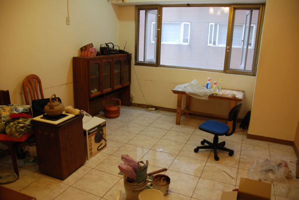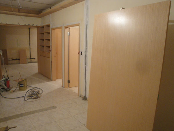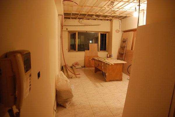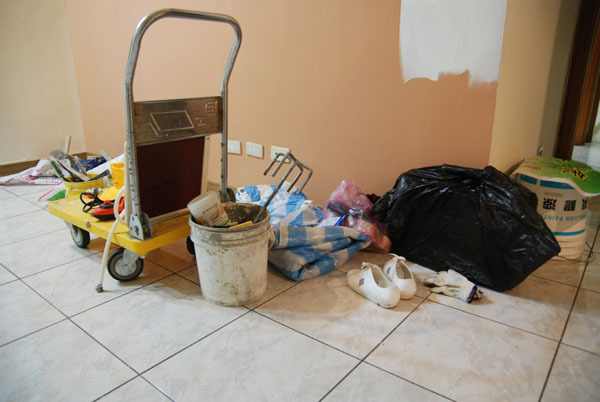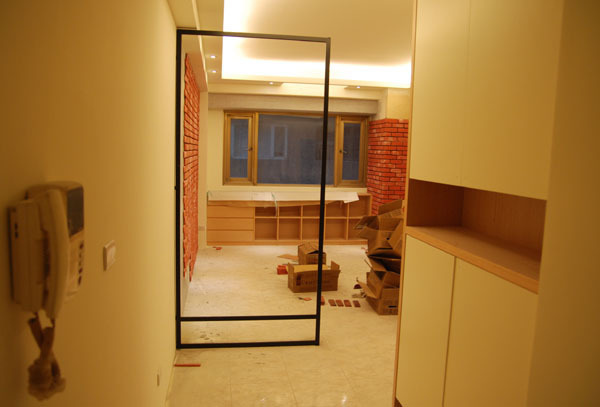 泥作貼文化石、鐵工蔡師傅裝設好的拉門