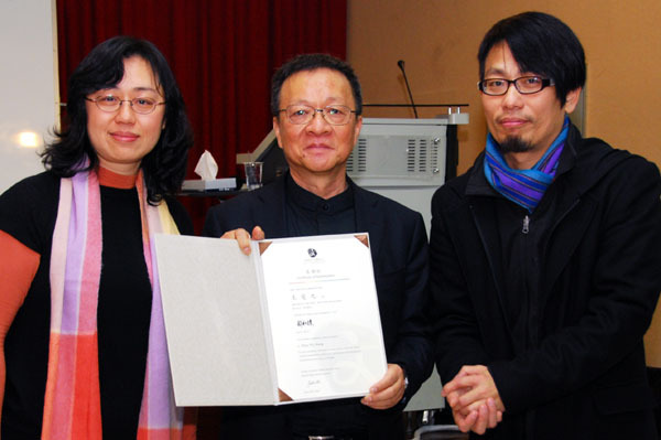 左起:施令紅教授、王受之院長、許和捷主任